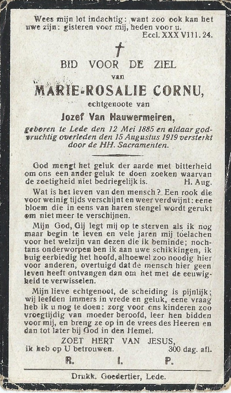 Overlijden van een dochter | Maria Leopoldina Van Hauwermeiren 30 oktober 1912 (Leeftijd 27 jaar) |