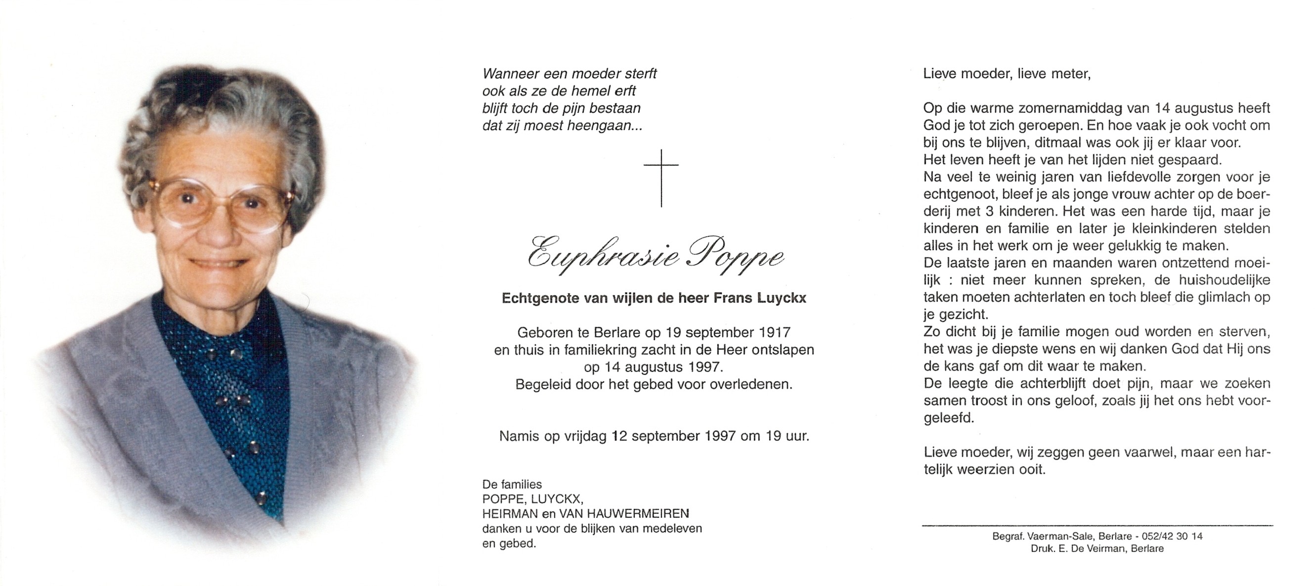 Euphrasie PoppeLeeftijd: 79 jaar1917–1997