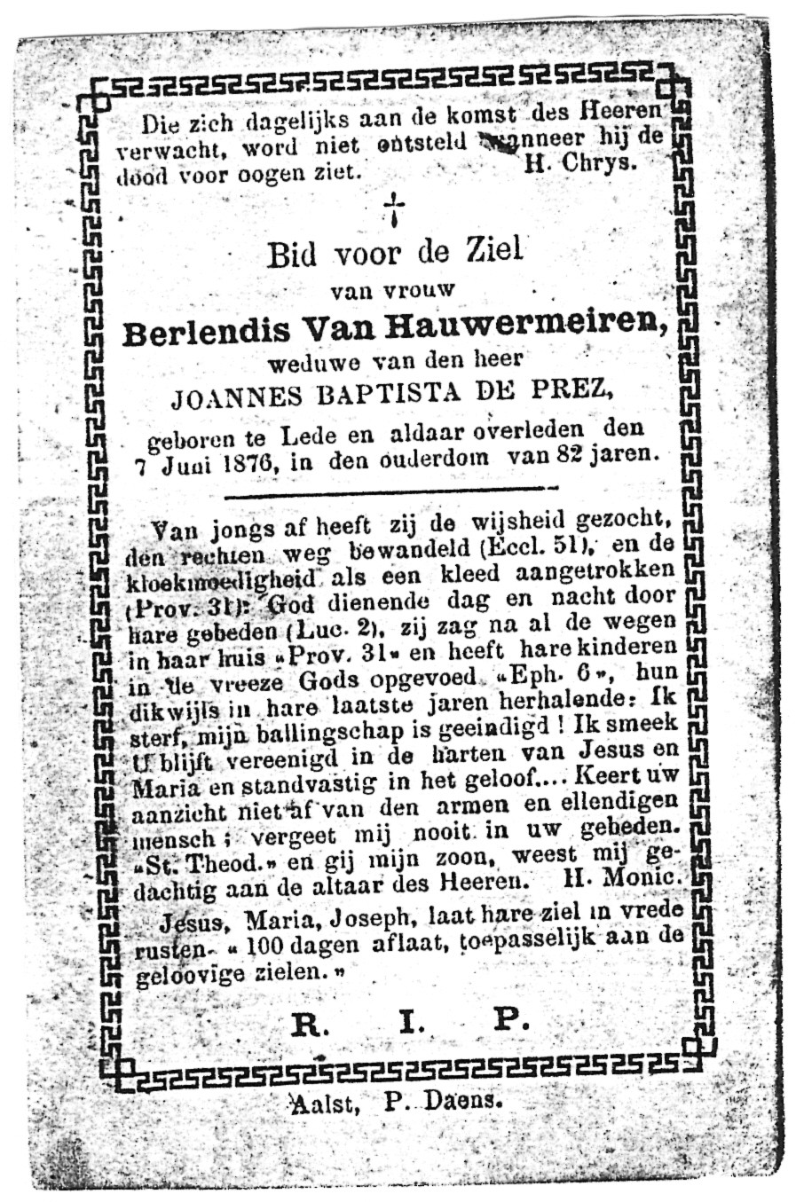Berlindis Van Hauwermeiren Geboren: 18 september 1794 45 37 — Lede Overleden: 7 juni 1876 — Lede |
