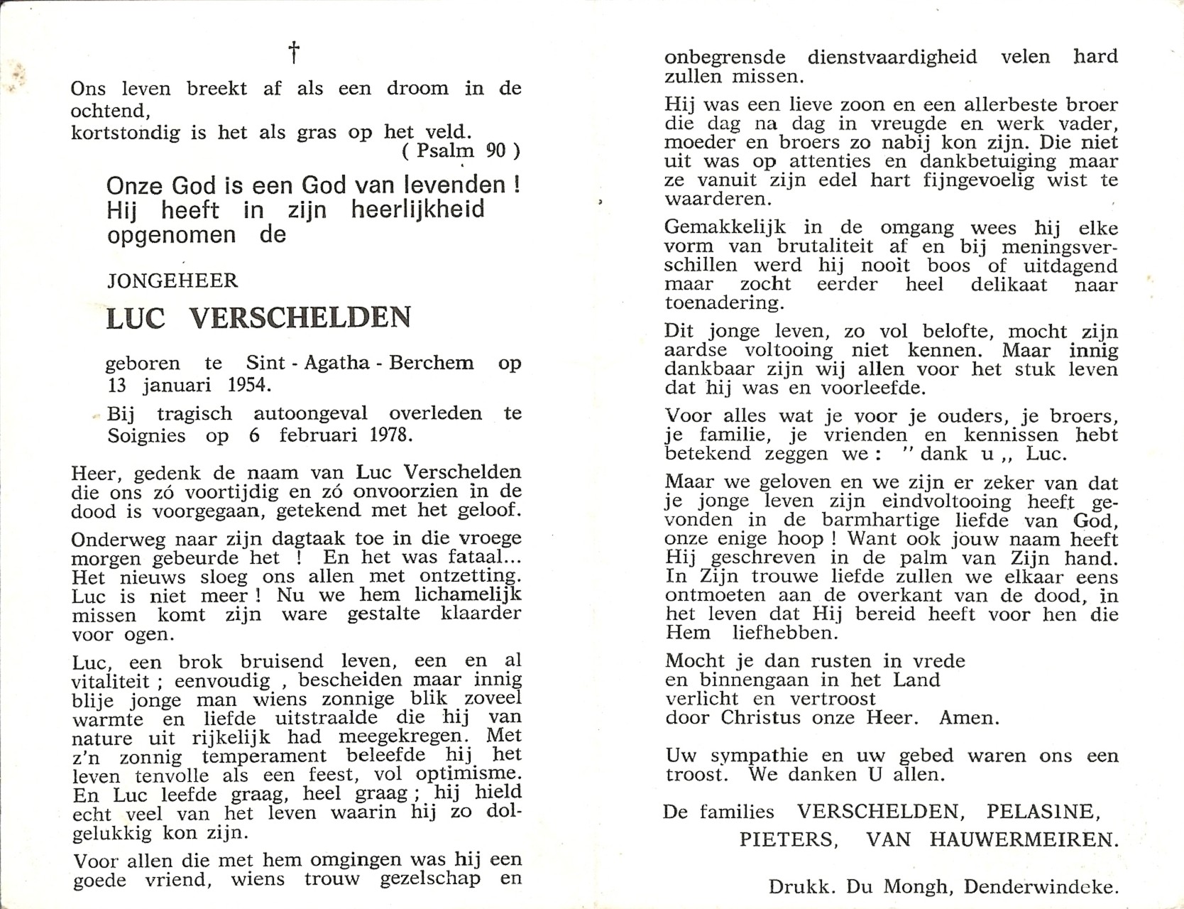 Luc Verschelden Geboren: 13 januari 1954 39 — Sint-Agatha-Berchem Overleden: 6 februari 1978 — Soignies |