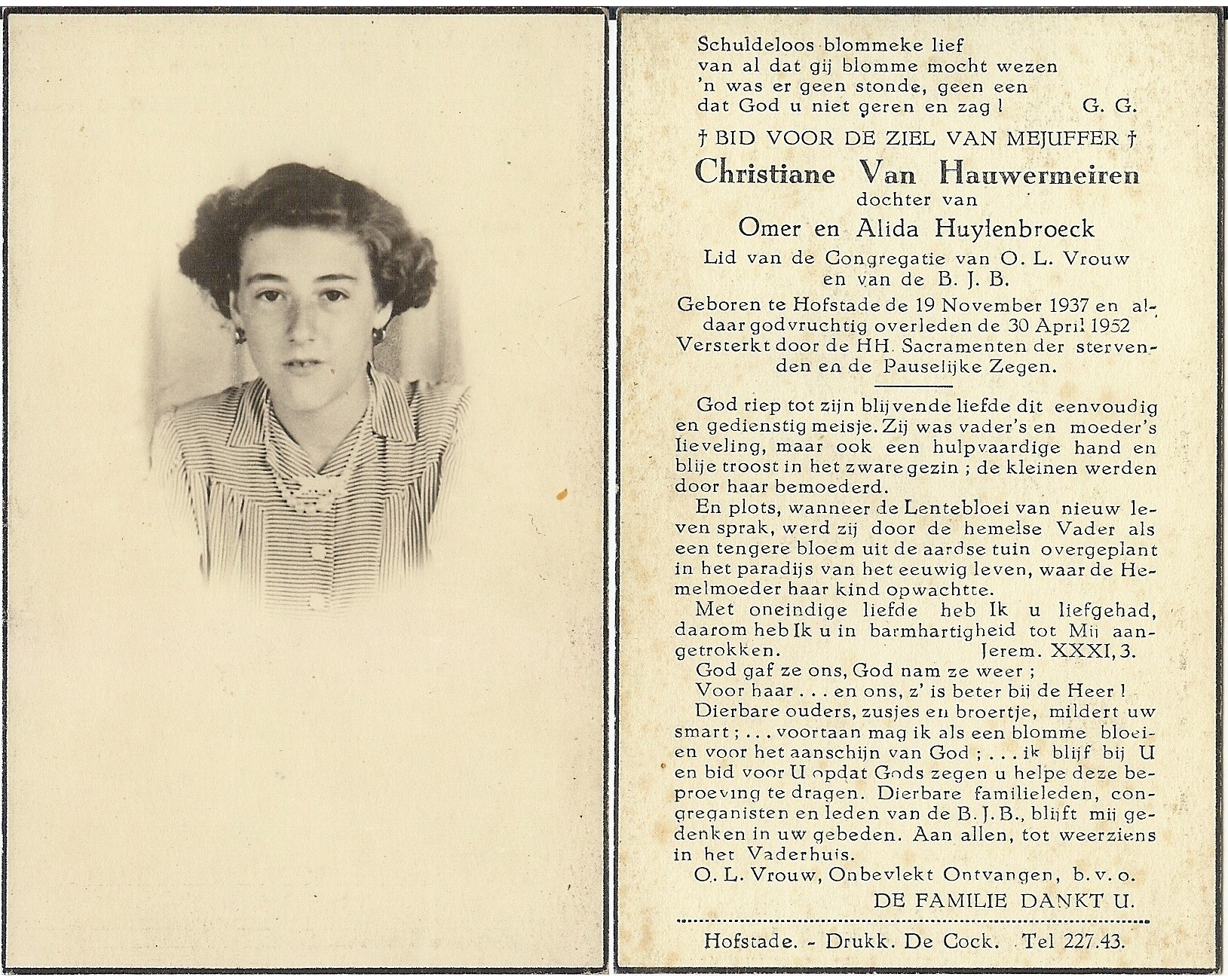 Overlijden van een kleindochter | Christiane Van Hauwermeiren 30 april 1952 (Leeftijd 73 jaar) |