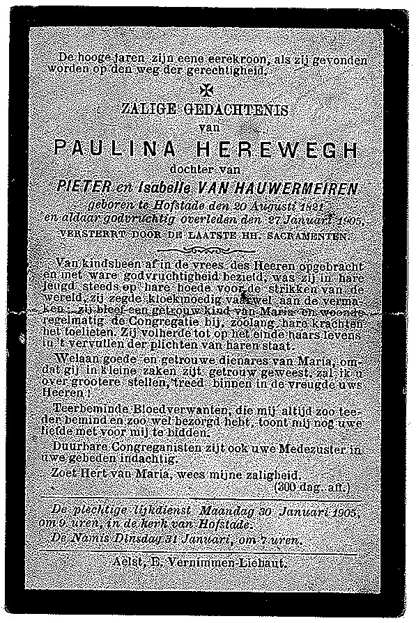 Paulina Herewegh Geboren: 20 augustus 1821 32 28 — Hofstade Overleden: 27 januari 1905 — Hofstade |
