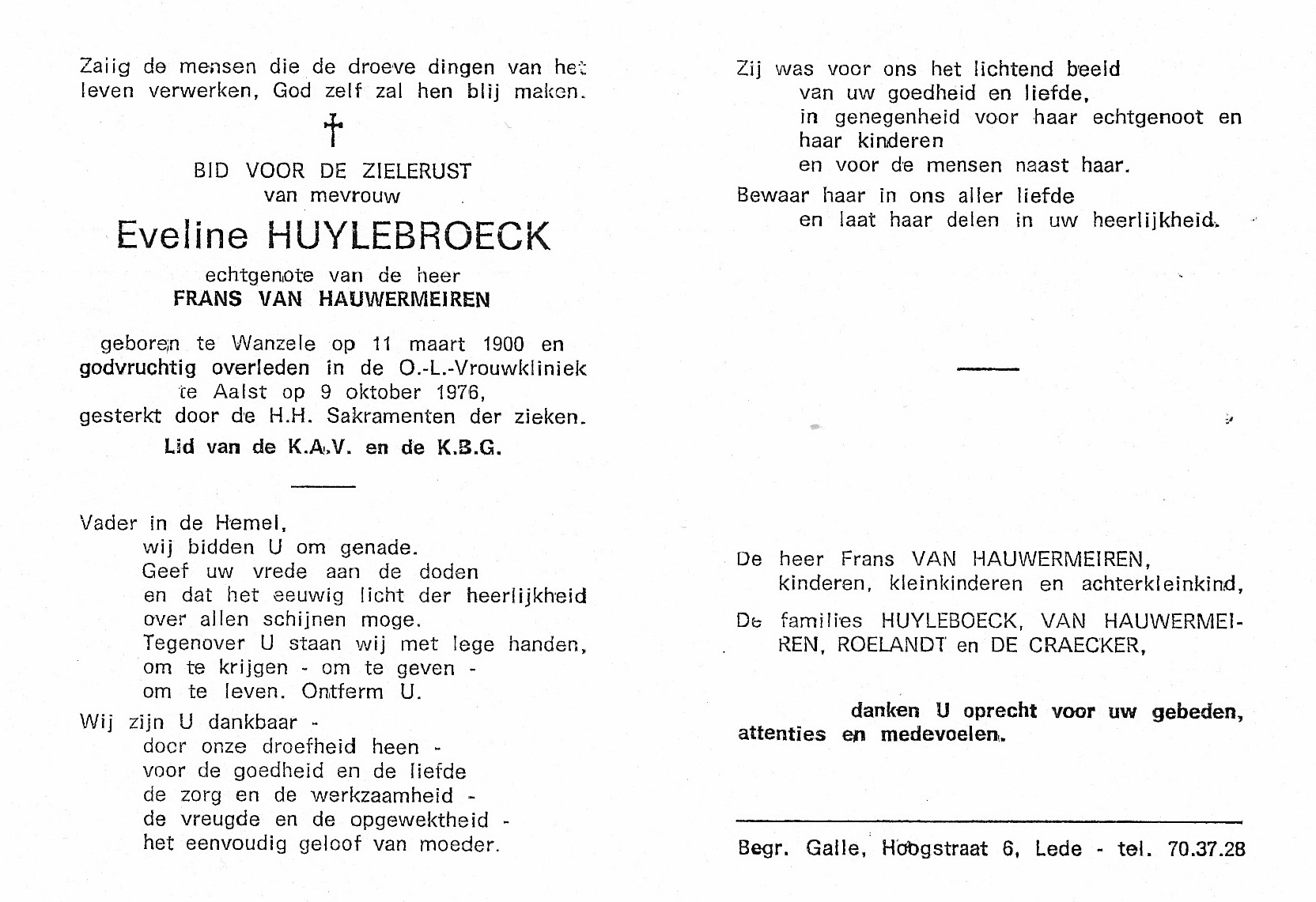 Overlijden van een echtgenote | Eveline Huylebroeck 9 oktober 1976 (Leeftijd 80 jaar) |