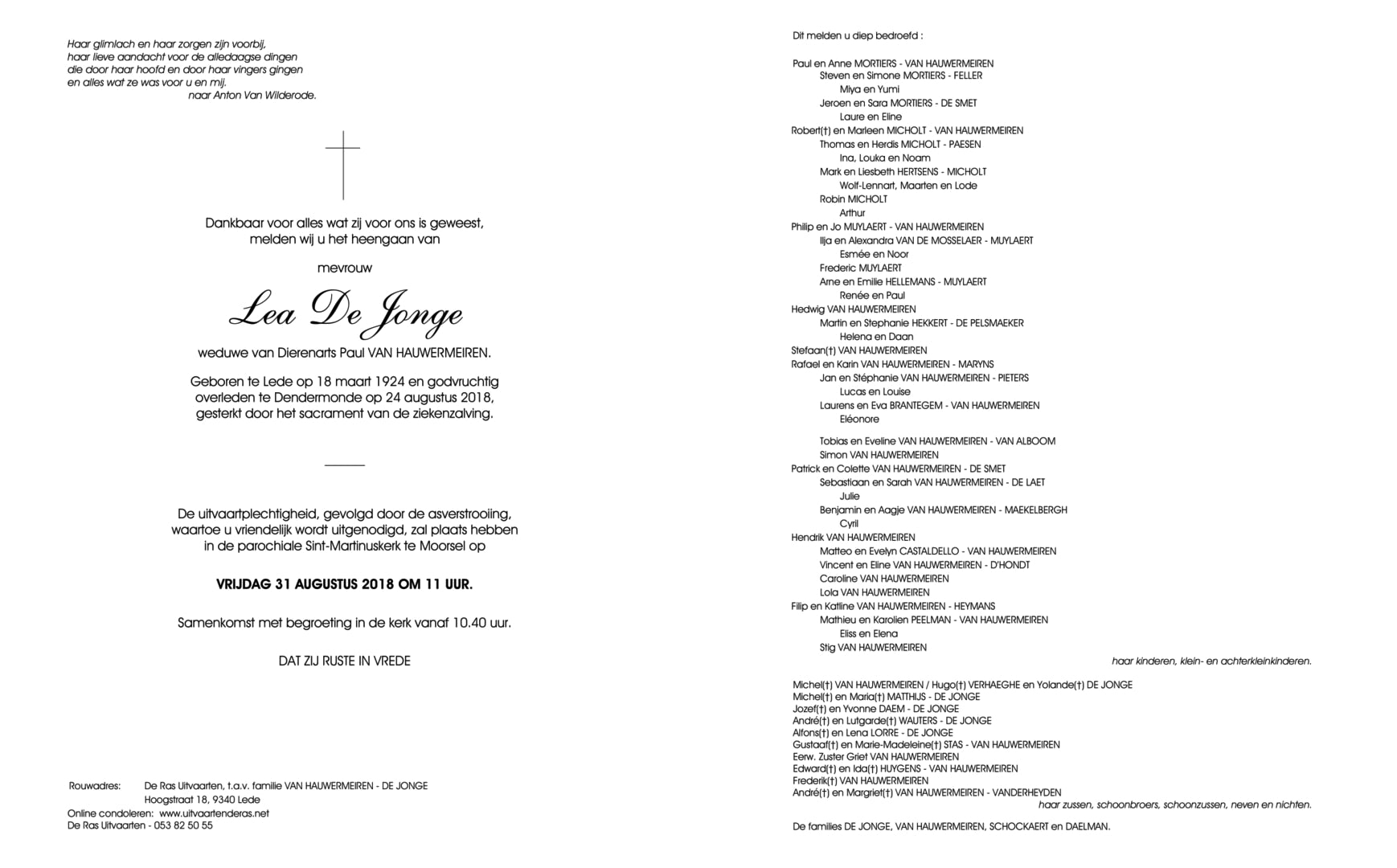Begrafenis van vader | Paul Van Hauwermeiren 30 juni 1992 (Leeftijd 34 jaar) |