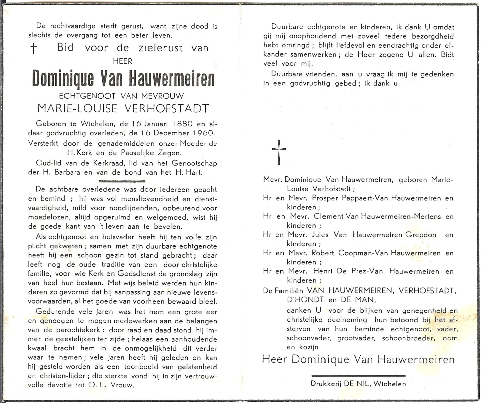 Overlijden van grootvader van vaders kant | Dominicus Van Hauwermeiren 16 december 1960 (Leeftijd 6 jaar) |