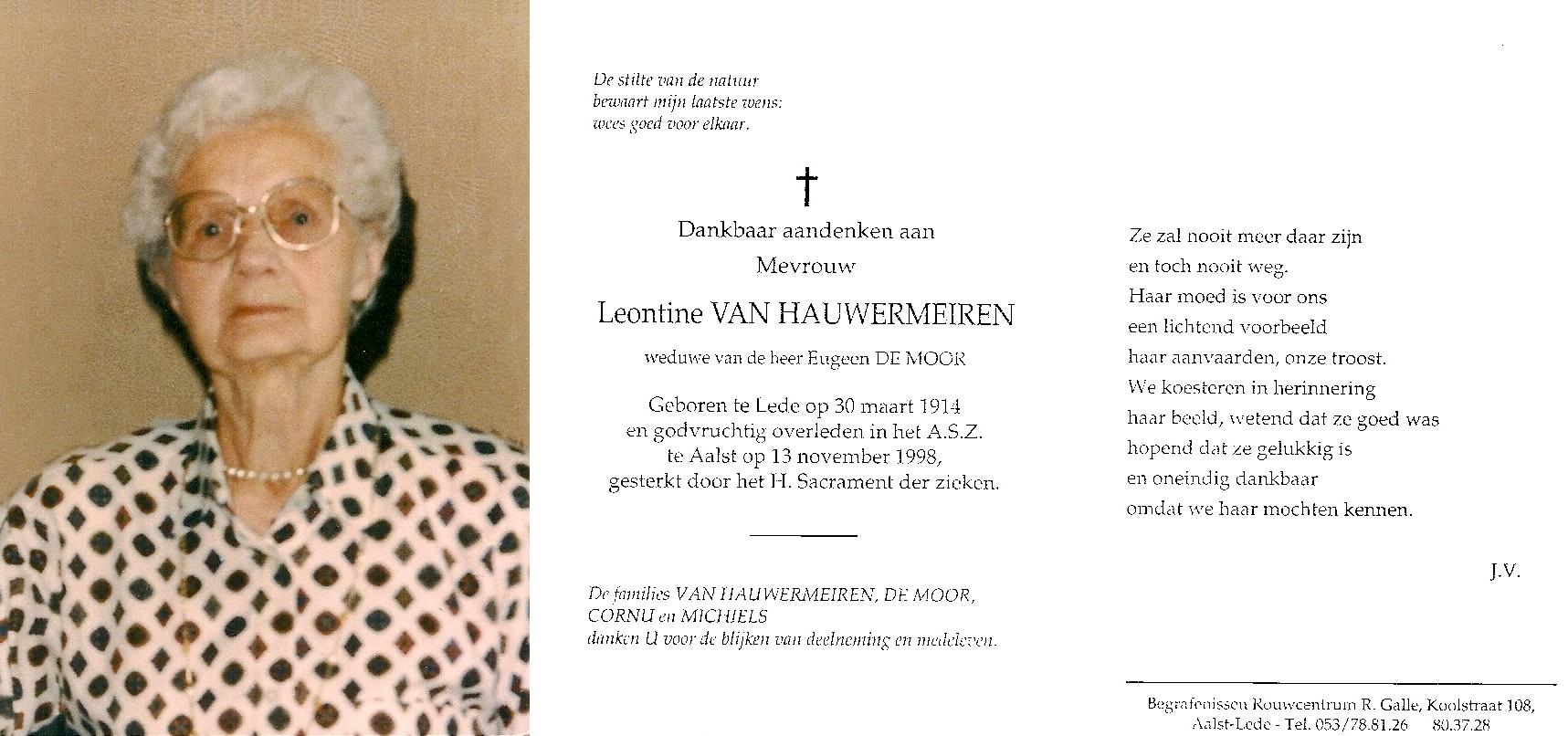 Leontine Van HauwermeirenLeeftijd: 84 jaar1914–1998