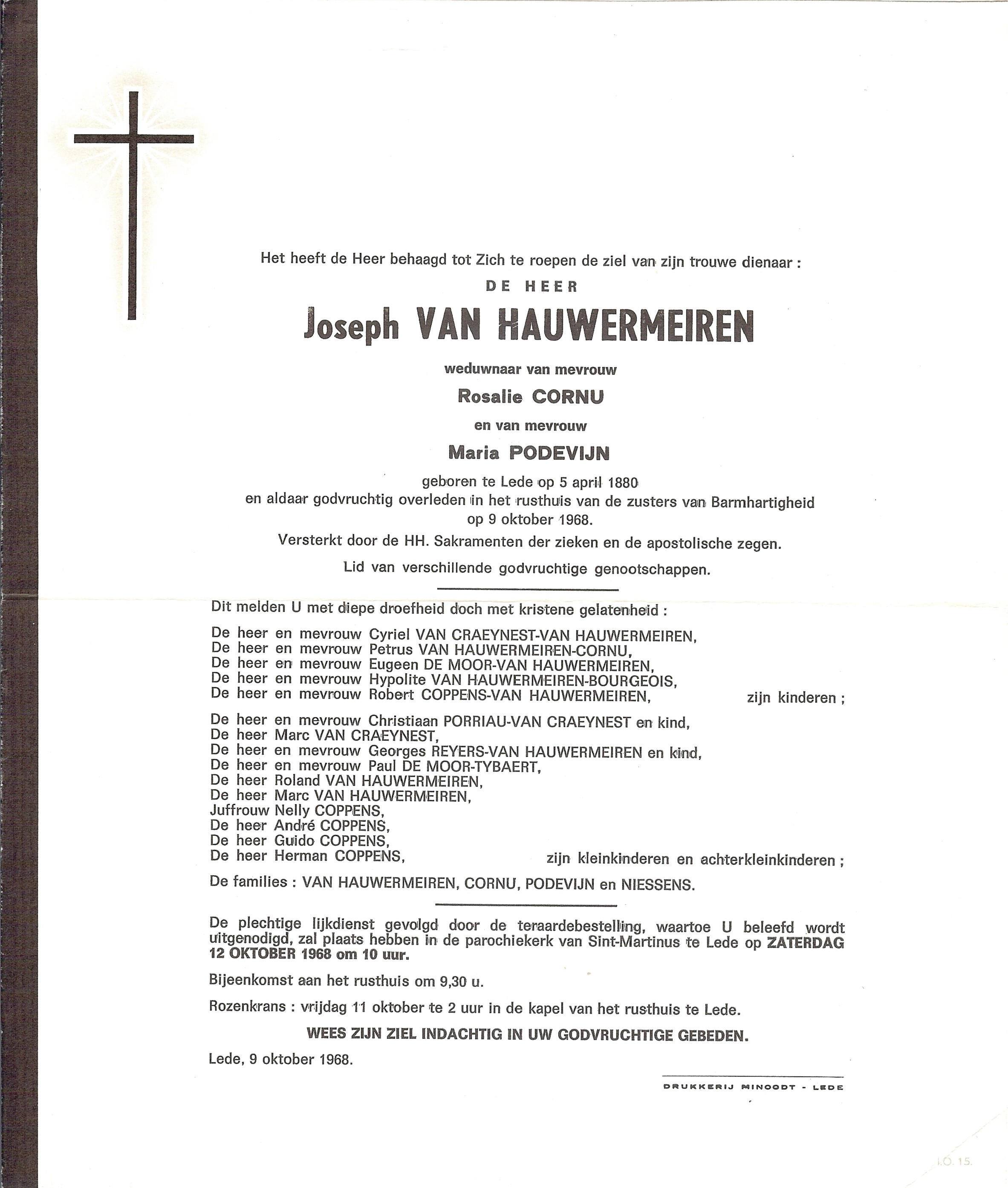 Begrafenis van grootvader van moeders kant | Joseph Van Hauwermeiren 12 oktober 1968 (Leeftijd 22 jaar) |