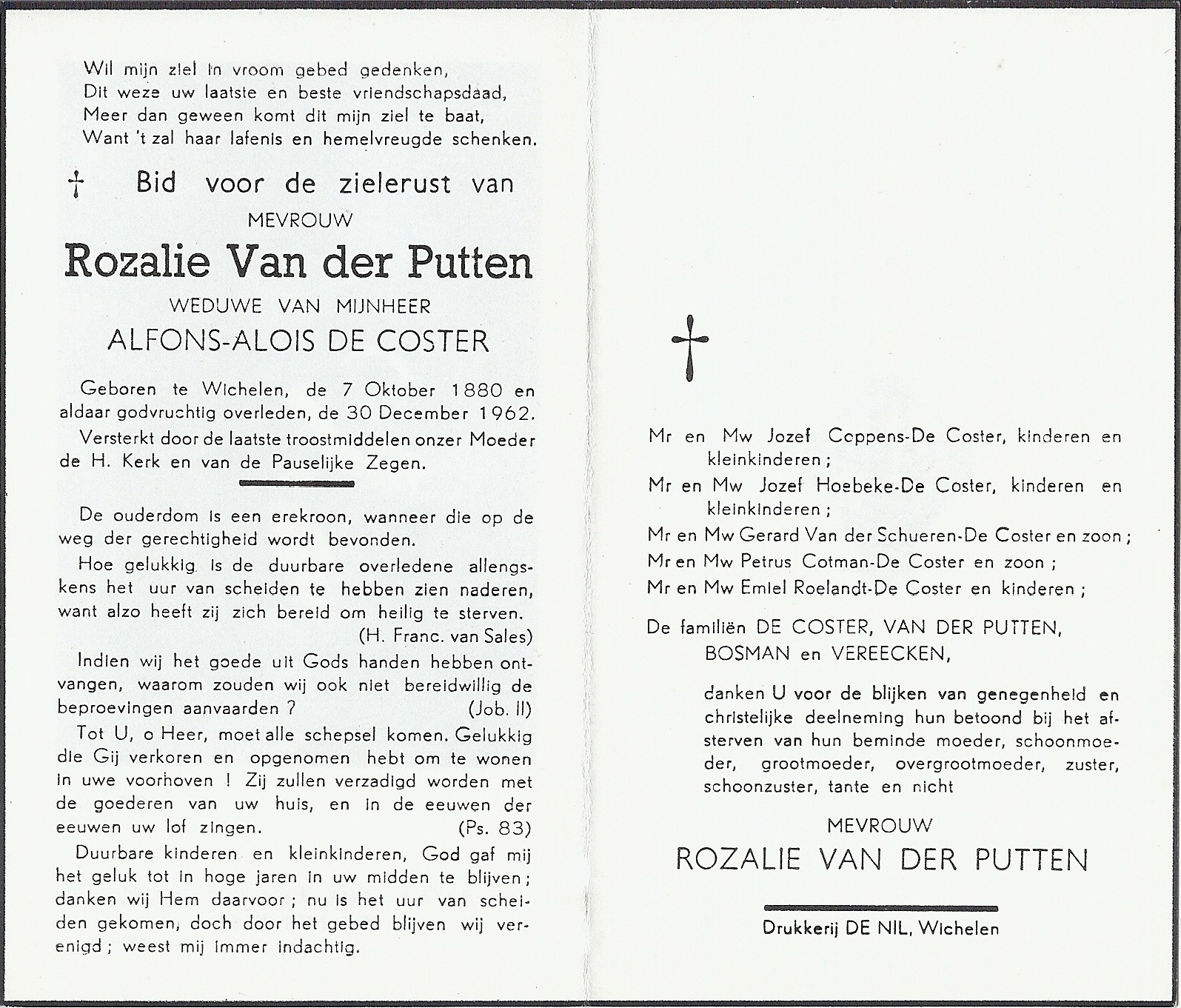 Maria De Coster Geboren: 19 december 1905 30 25 — Wichelen Overleden: 26 mei 1995 — Wichelen |