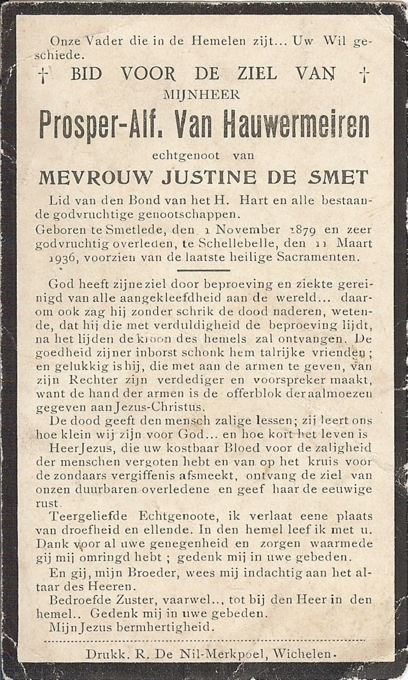 Alfons Prosper Clement Van Hauwermeiren Geboren: 1 november 1879 28 35 — Smetlede Overleden: 11 maart 1936 — Schellebelle |