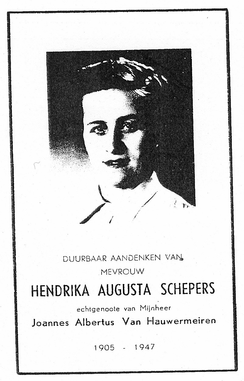 Hendrica Augusta Schepers Geboren: 1905 Overleden: 1947 |