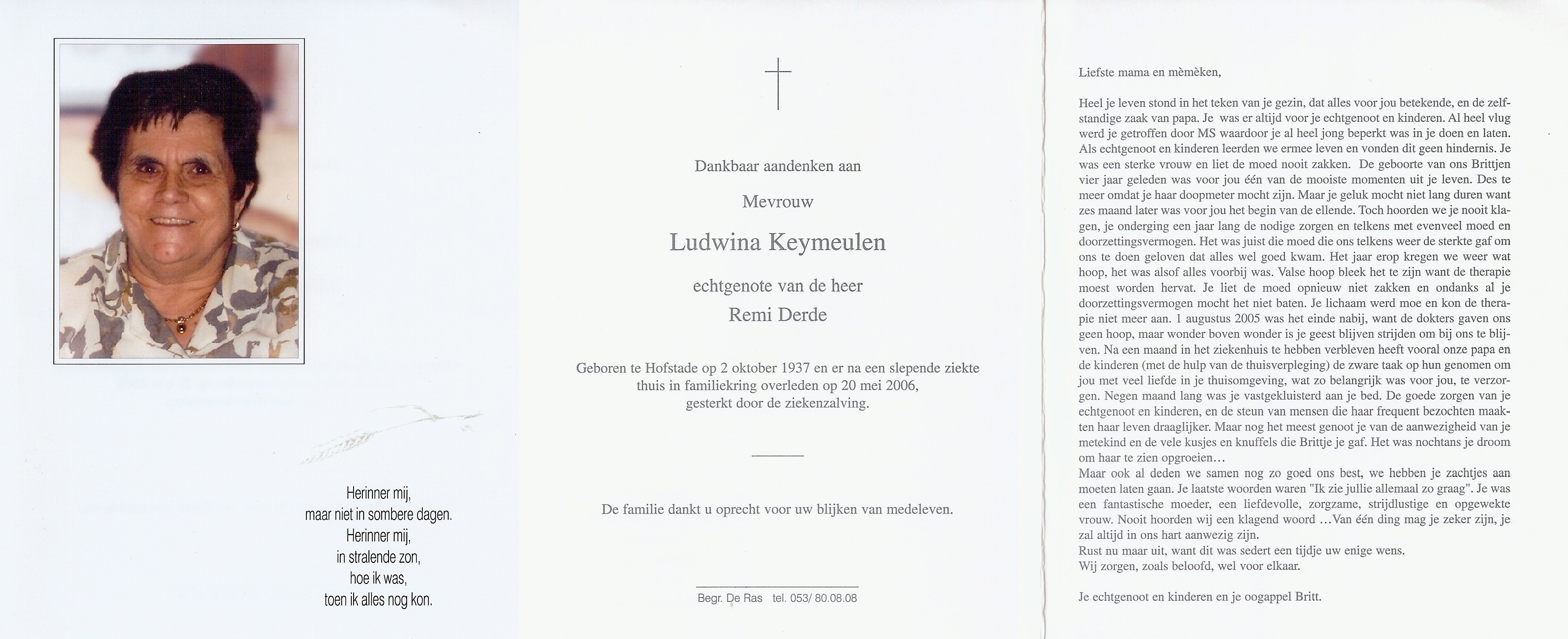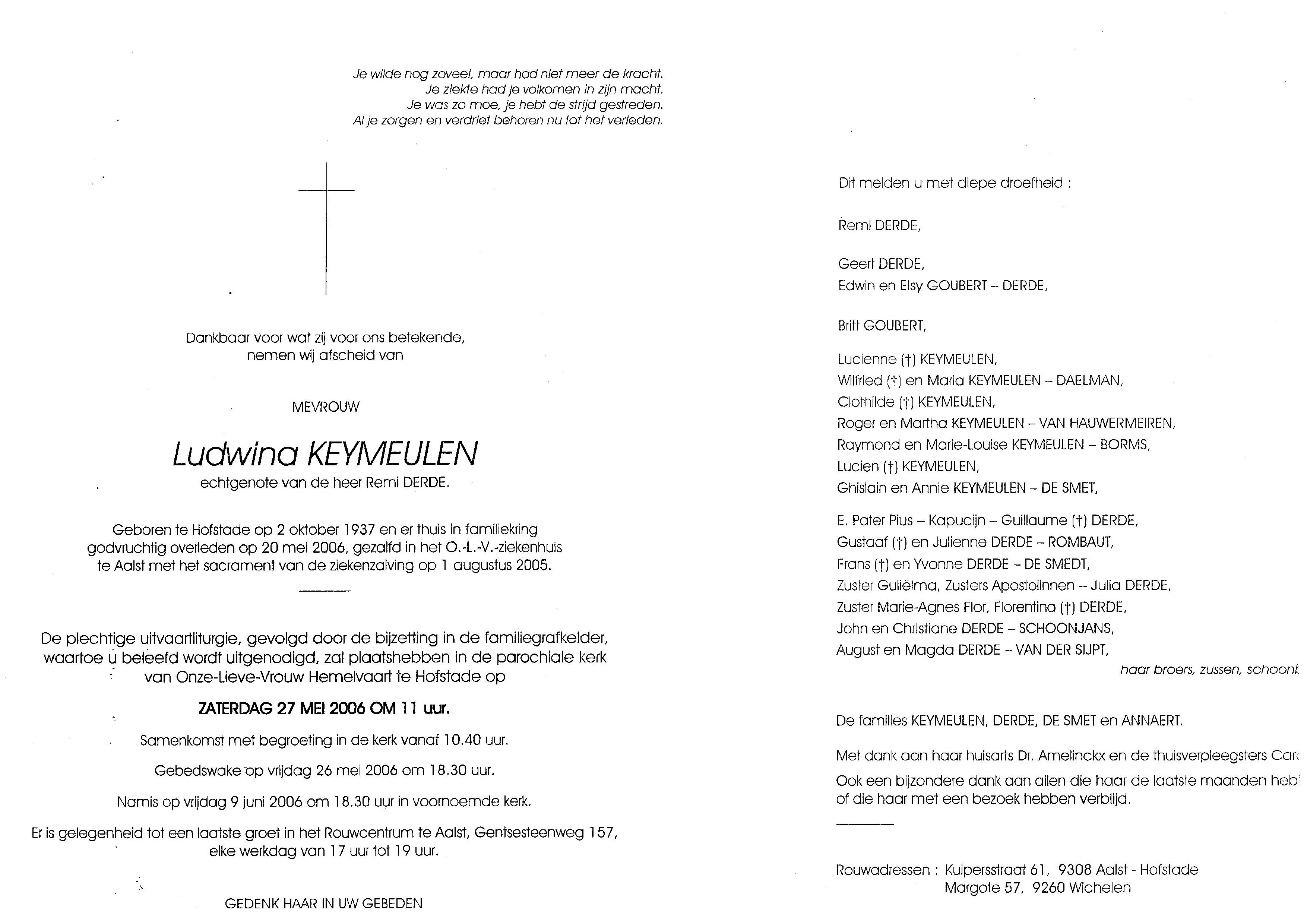 Begrafenis van moeder | Ludwina Keymeulen 27 mei 2006 (Leeftijd 43 jaar) |