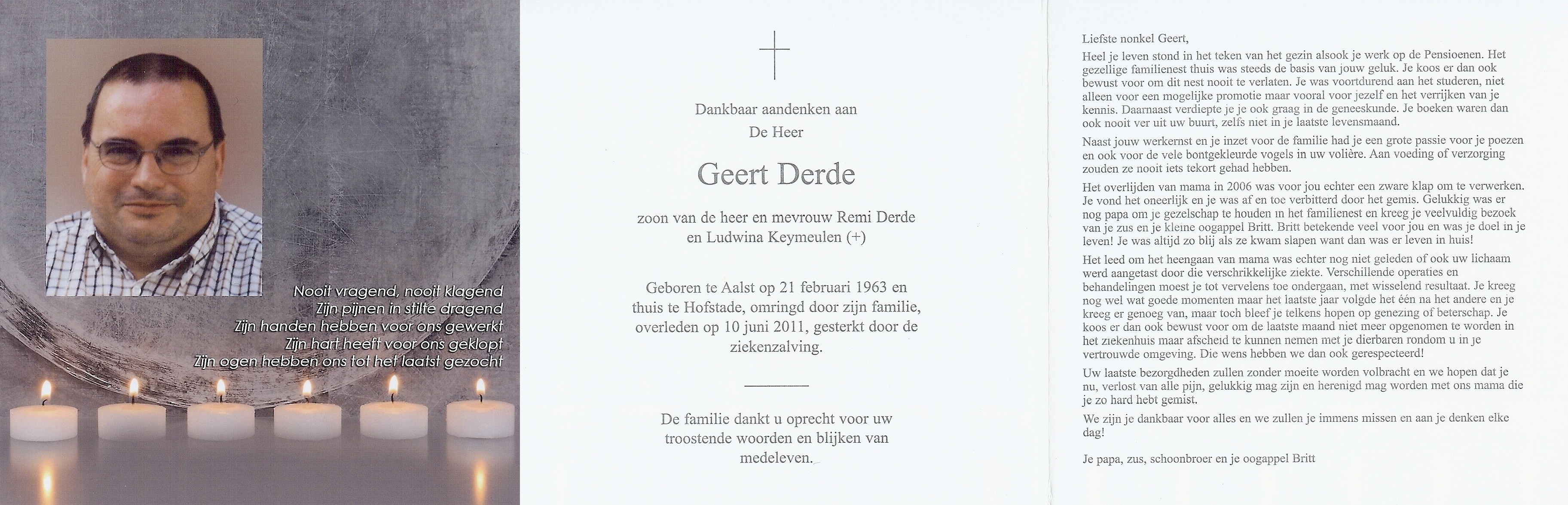 Geert Derde Geboren: 21 februari 1963 25 — Aalst Overleden: 10 juni 2011 — Hofstade |