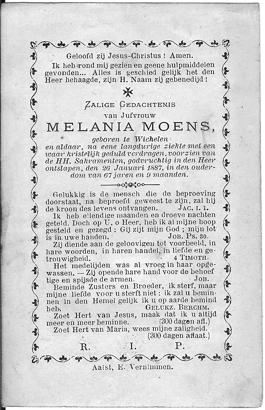 Melanie Moens Geboren: 1 april 1819 22 31 — Wichelen Overleden: 26 januari 1887 — Wichelen |