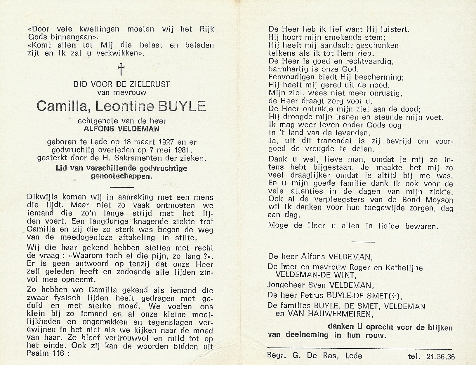 Camilla Leontine Buyle Geboren: 18 maart 1927 — Lede Overleden: 7 mei 1981 — Lede |