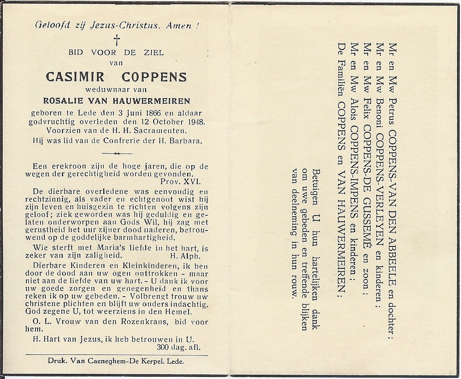 Casimir Coppens Geboren: 3 juni 1866 — Lede Overleden: 12 oktober 1948 — Lede |