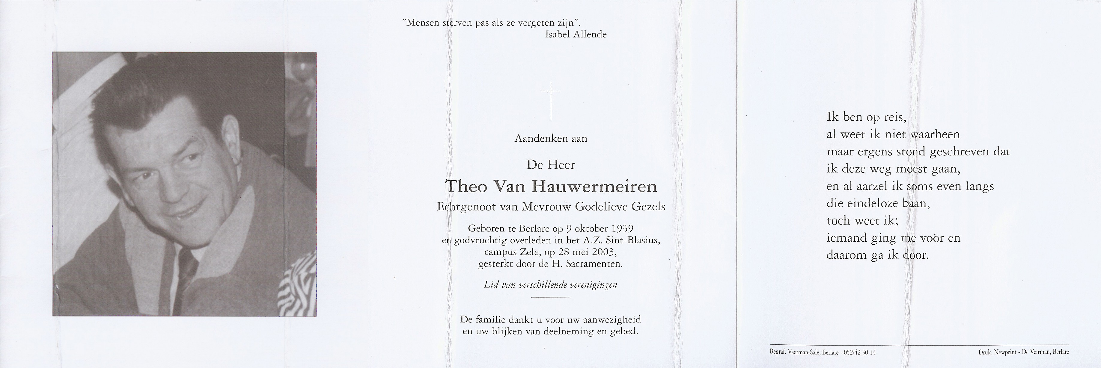 Theo Van HauwermeirenLeeftijd: 63 jaar1939–2003