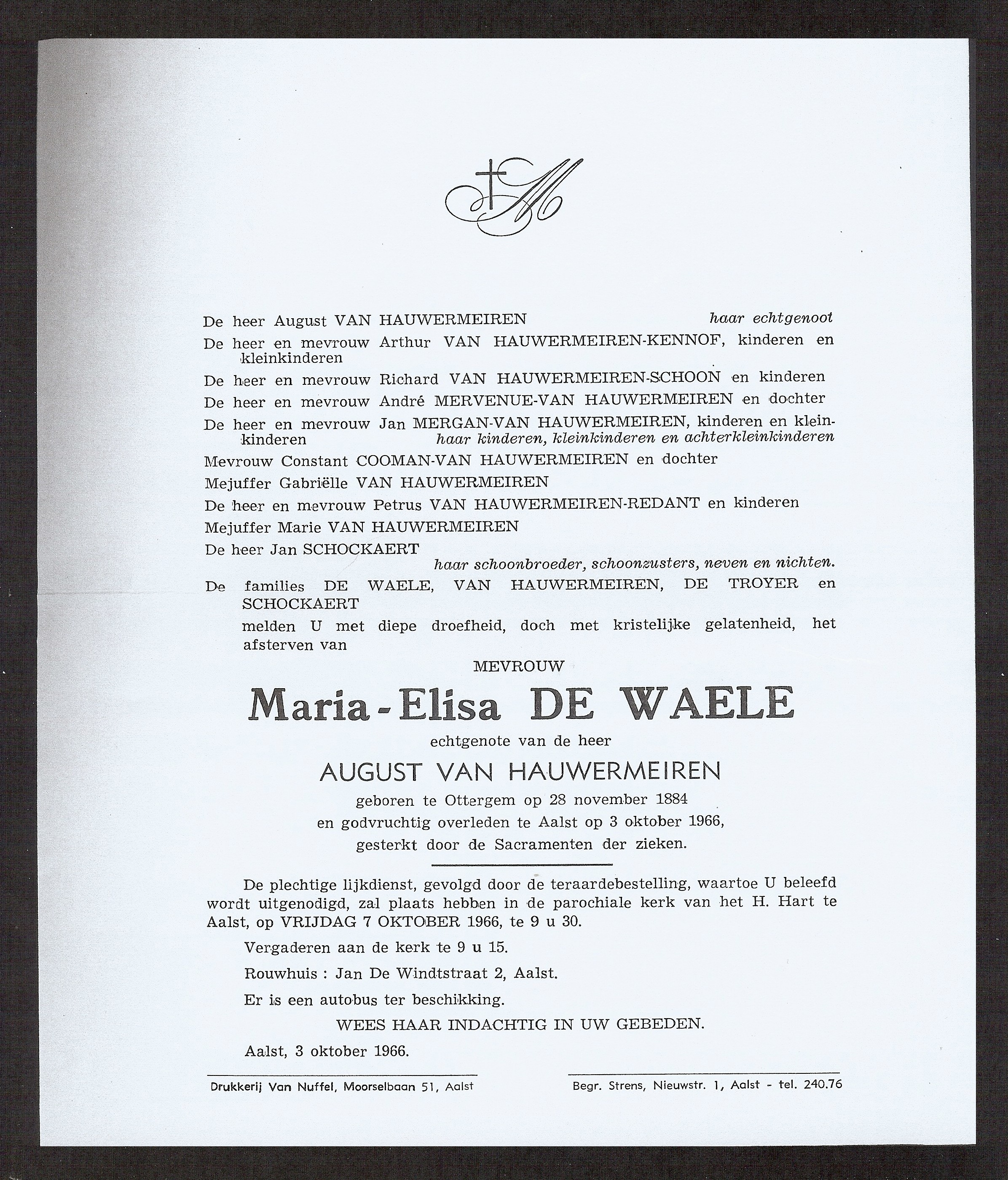 Begrafenis van grootmoeder van vaders kant | Marie-Elisa De Waele 7 oktober 1966 (Leeftijd 22 jaar) |