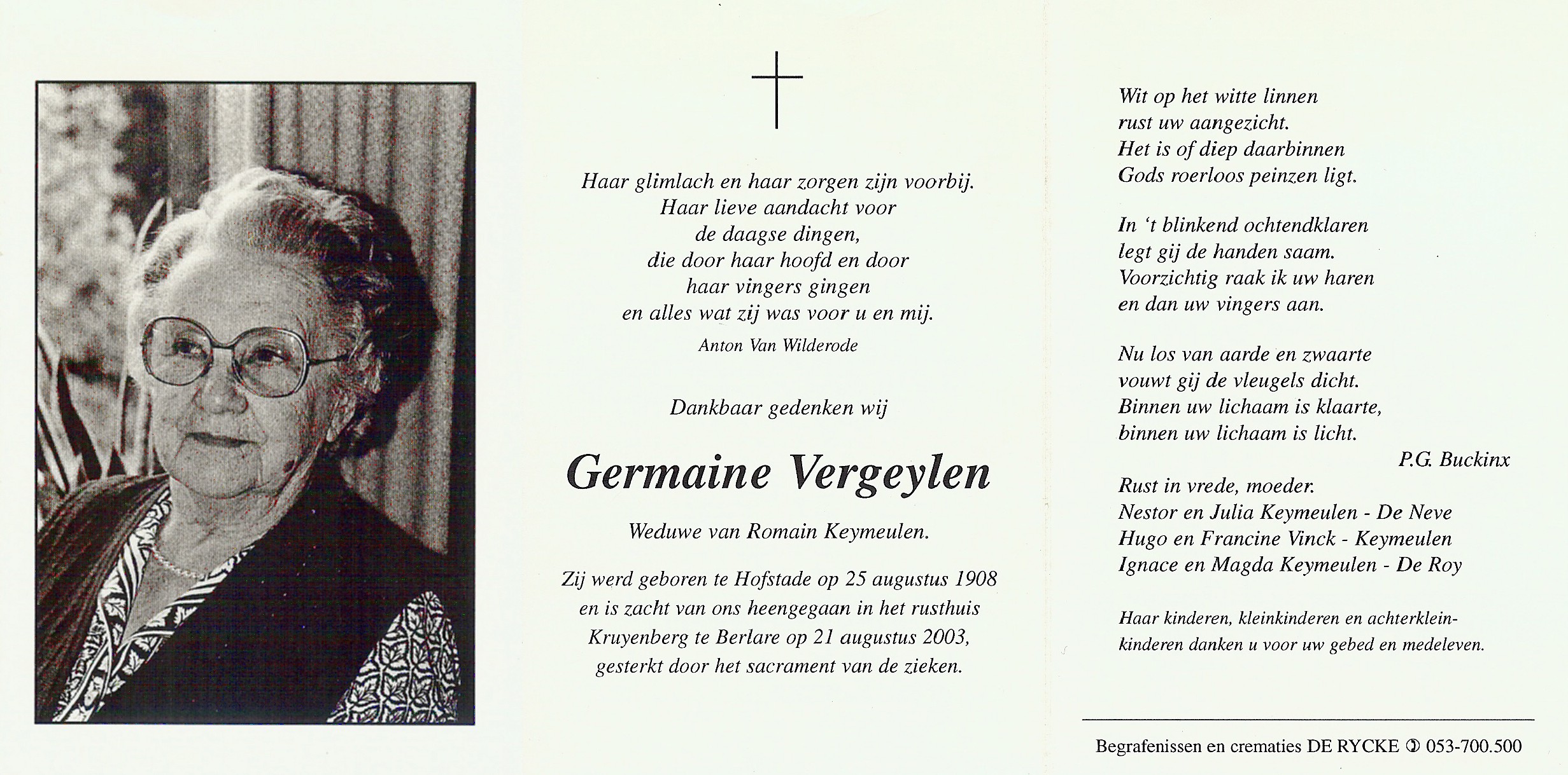 Germaine VergeylenLeeftijd: 94 jaar1908–2003