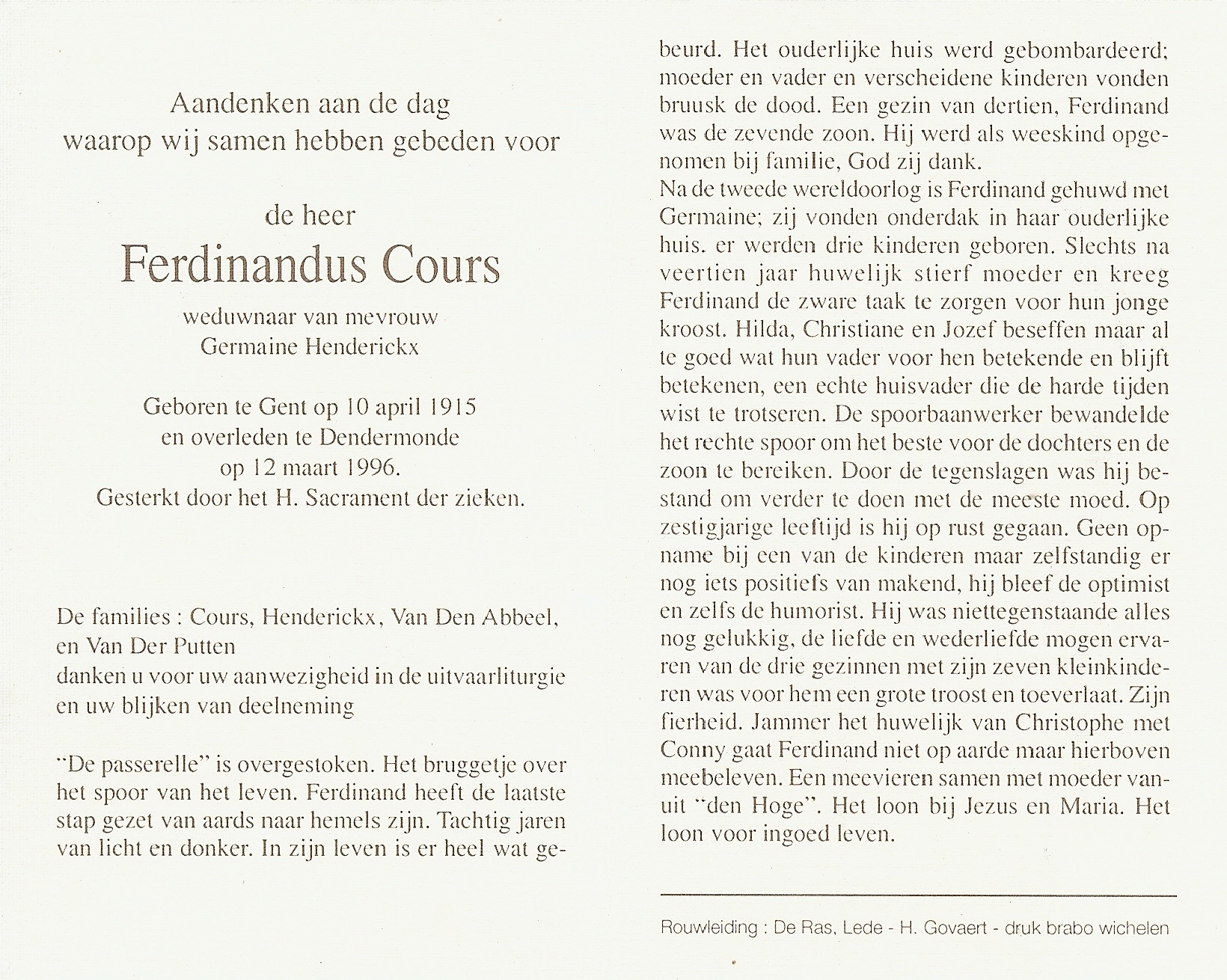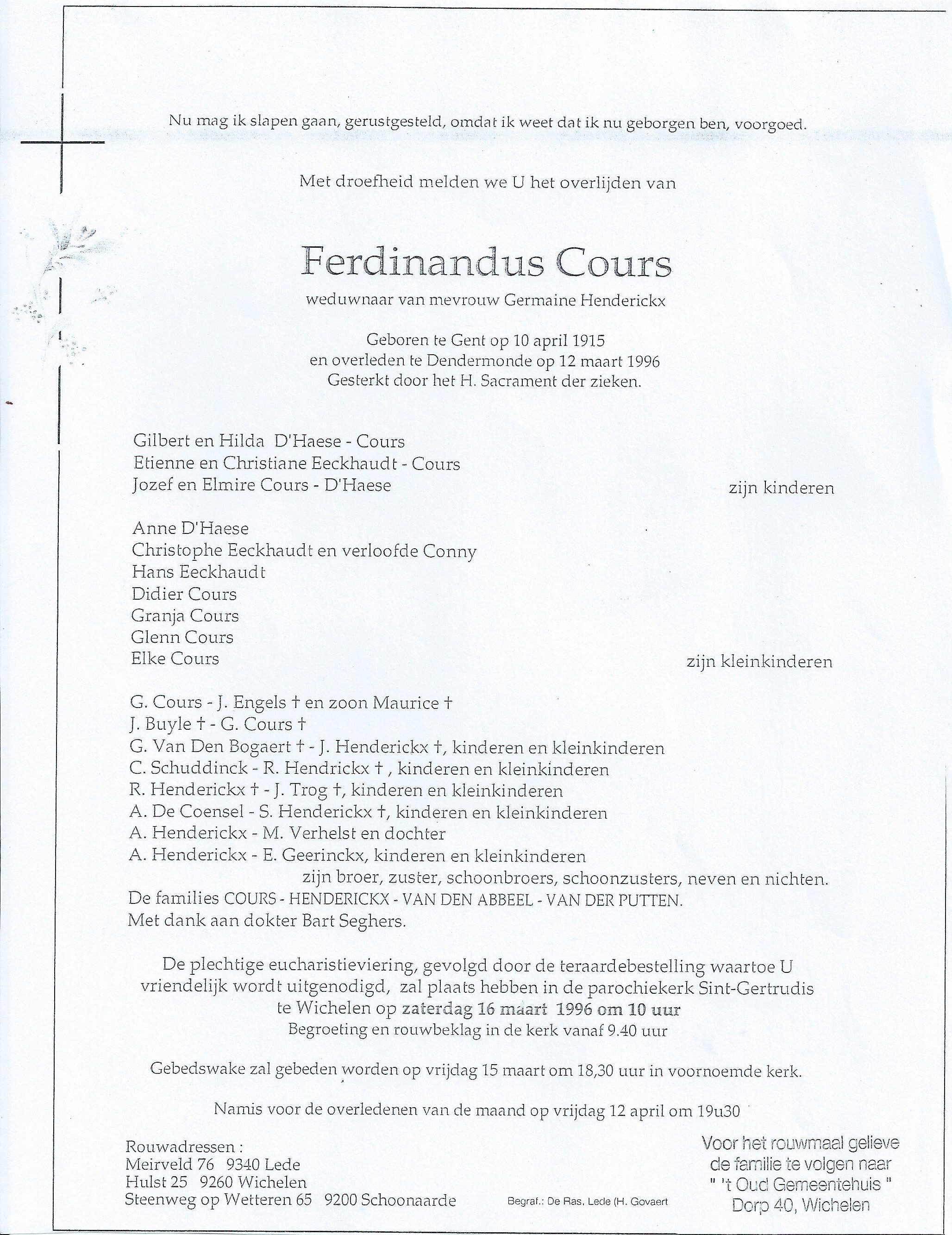Ferdinand Albert CoursLeeftijd: 80 jaar1915–1996