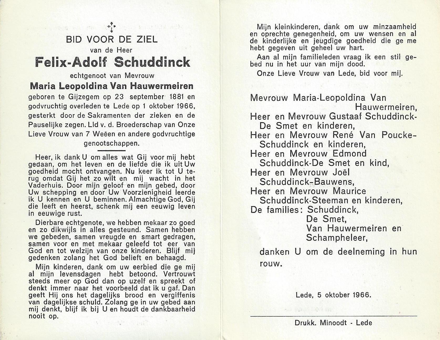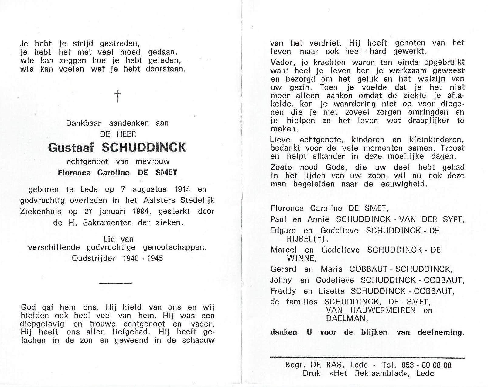Gustaaf Schuddinck Geboren: 7 augustus 1914 32 32 — Lede Overleden: 27 januari 1994 — Aalst |