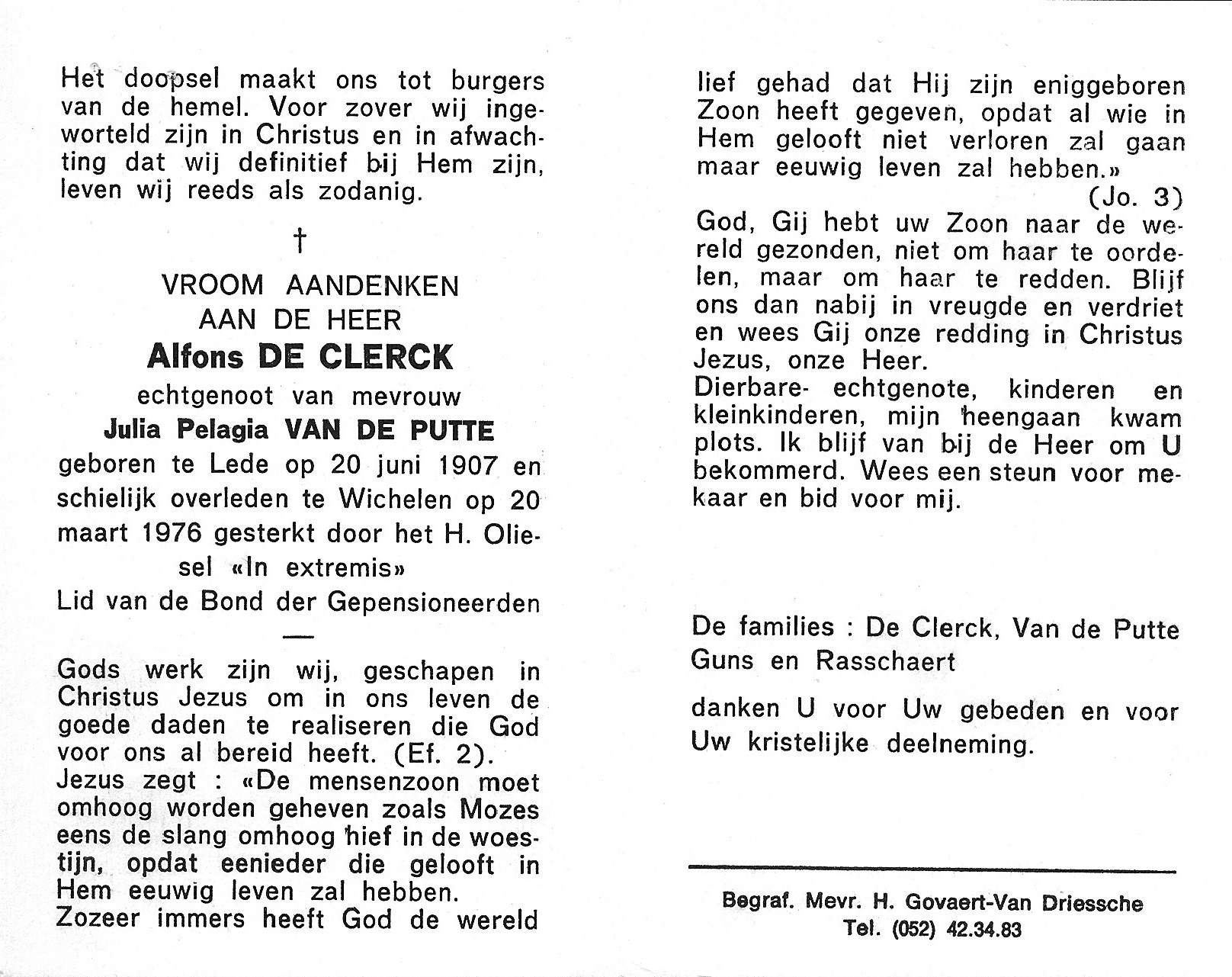 Begrafenis van een zoon | Alfons De Clerck 25 maart 1976 |