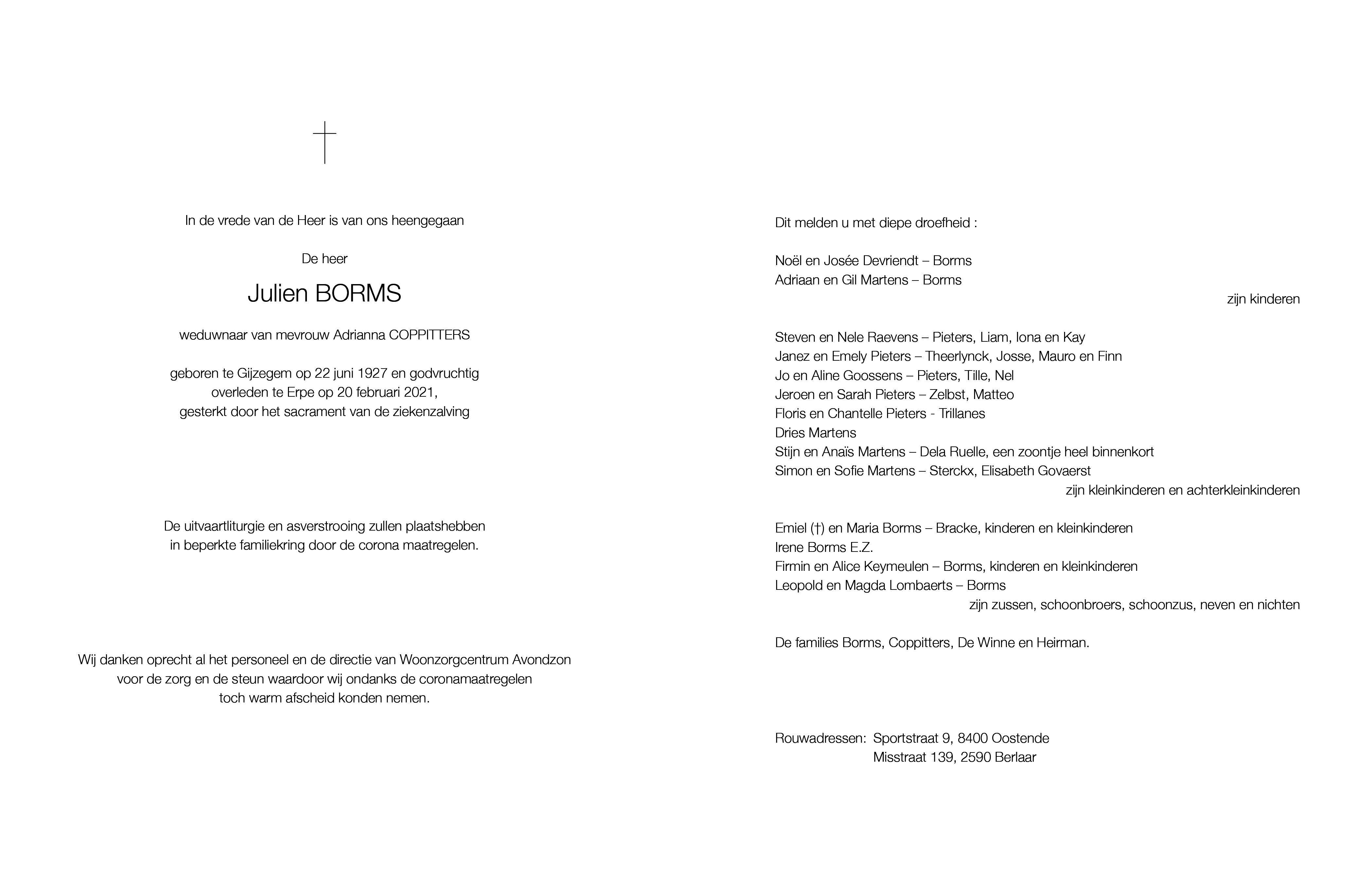 Julien Joseph BormsLeeftijd: 93 jaar1927–2021