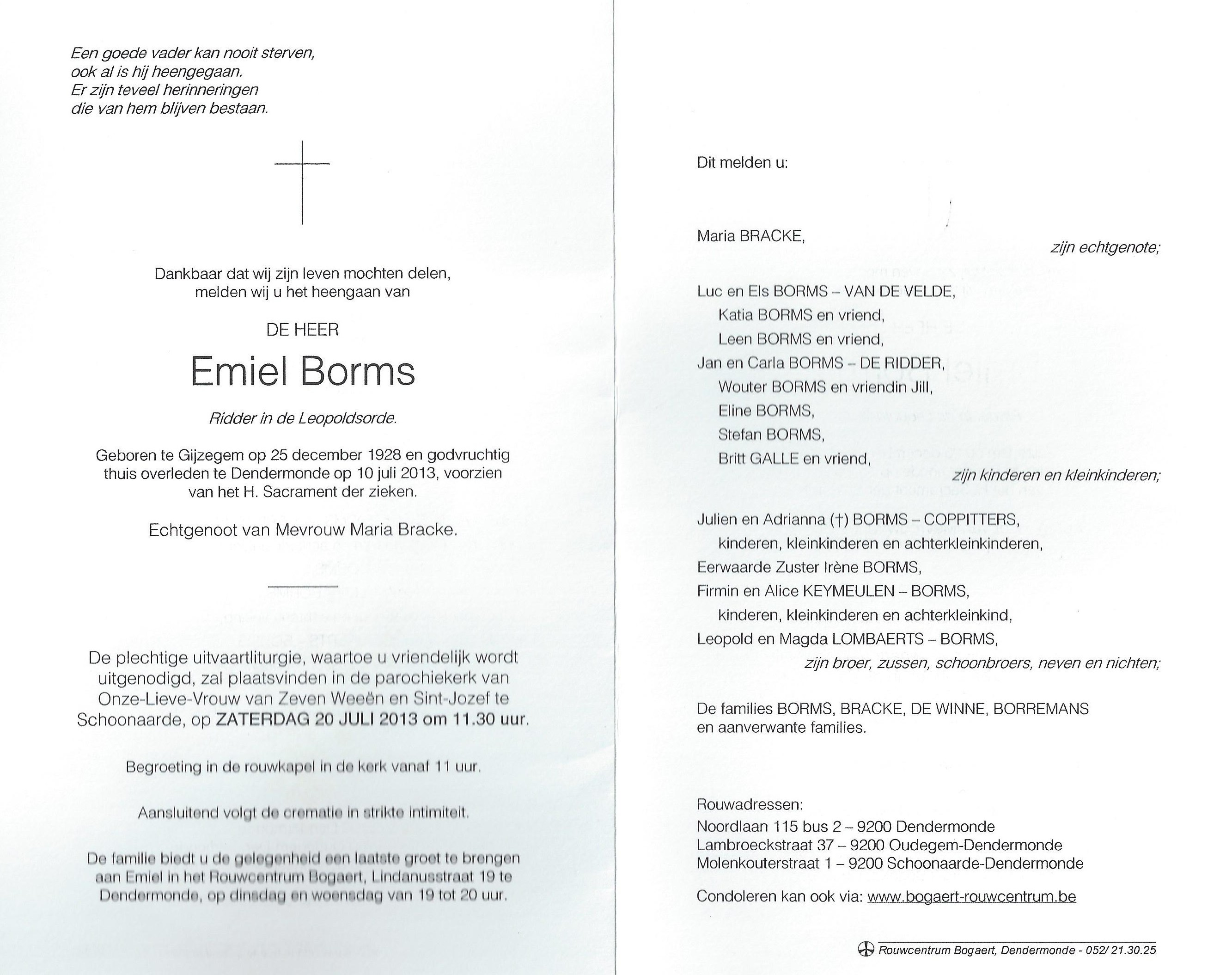 Emilius BormsLeeftijd: 84 jaar1928–2013