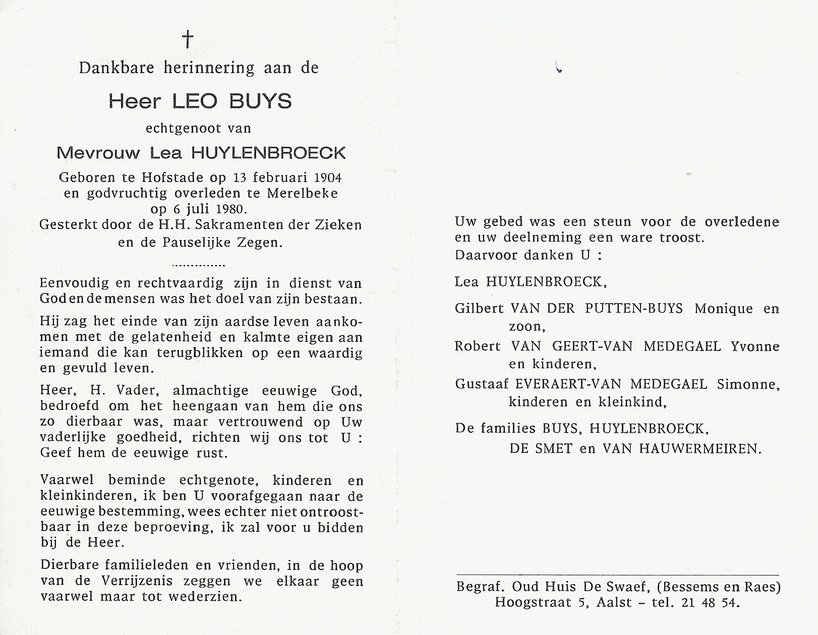 Leo Buys Geboren: 13 februari 1904 — Hofstade Overleden: 6 juli 1980 — Merelbeke |