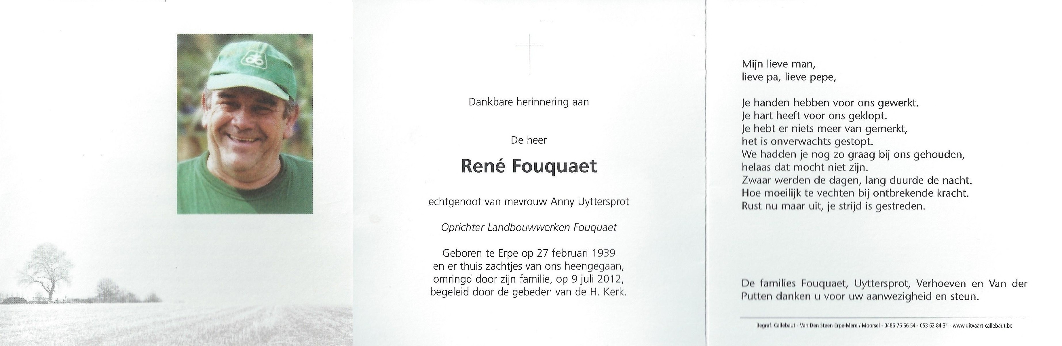 Overlijden van een echtgenoot | René Fouquaet 9 juli 2012 (Leeftijd 66 jaar) |
