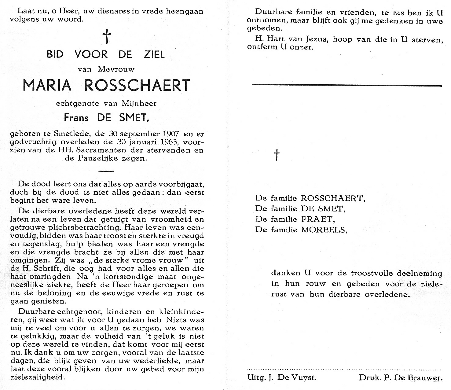 Maria Rosschaert Geboren: 30 september 1907 — Smetlede Overleden: 30 januari 1963 — Smetlede |