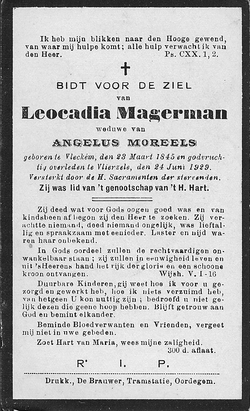 Marie-Hortensia Moreels Geboren: 19 juli 1877 22 32 — Vlierzele Overleden: 12 maart 1956 — Sint-Lievens-Houtem |