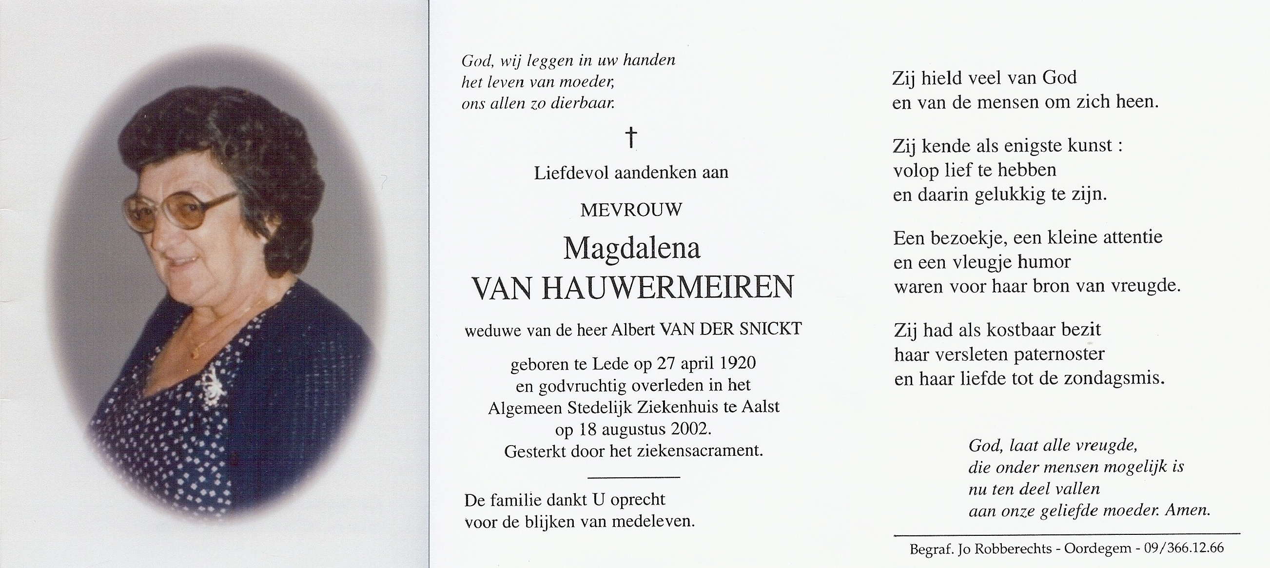 Magdalena Catharina Van HauwermeirenLeeftijd: 82 jaar1920–2002