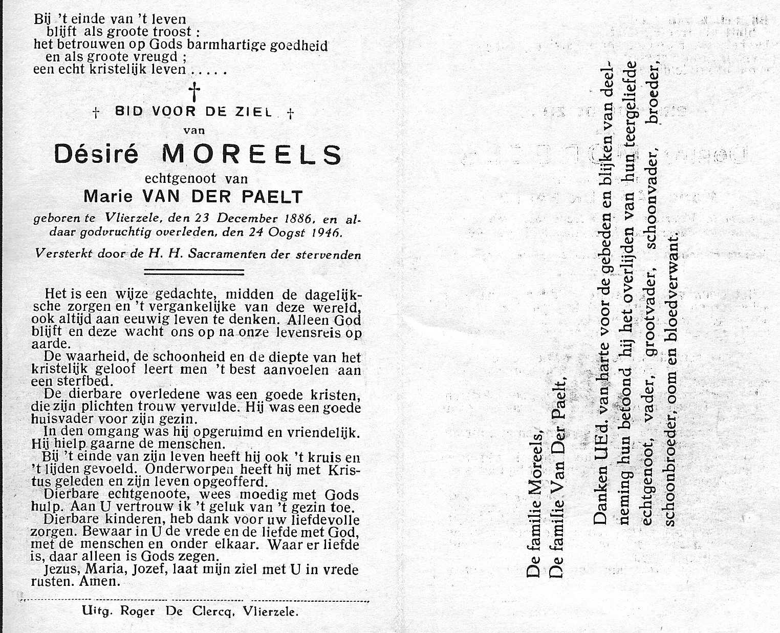 Désiré Moreels Geboren: 23 december 1886 31 41 — Vlierzele Overleden: 24 augustus 1946 — Vlierzele |