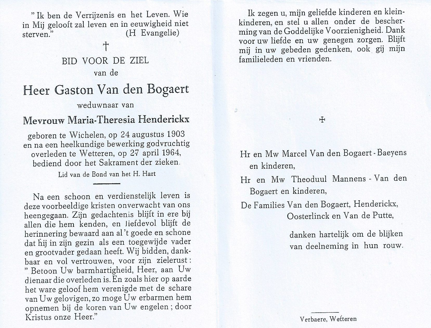 Overlijden van vader | Gaston Van den Bogaert 27 april 1964 (Leeftijd 32 jaar) |