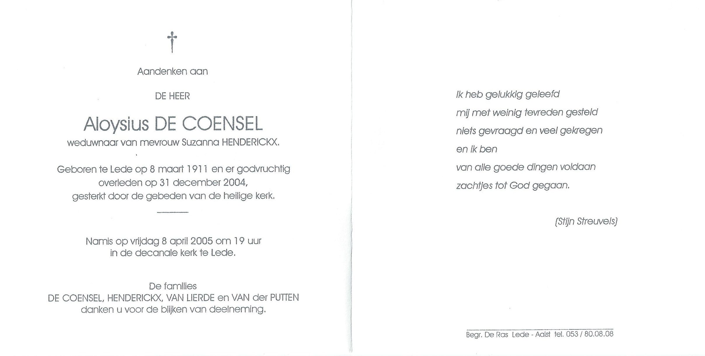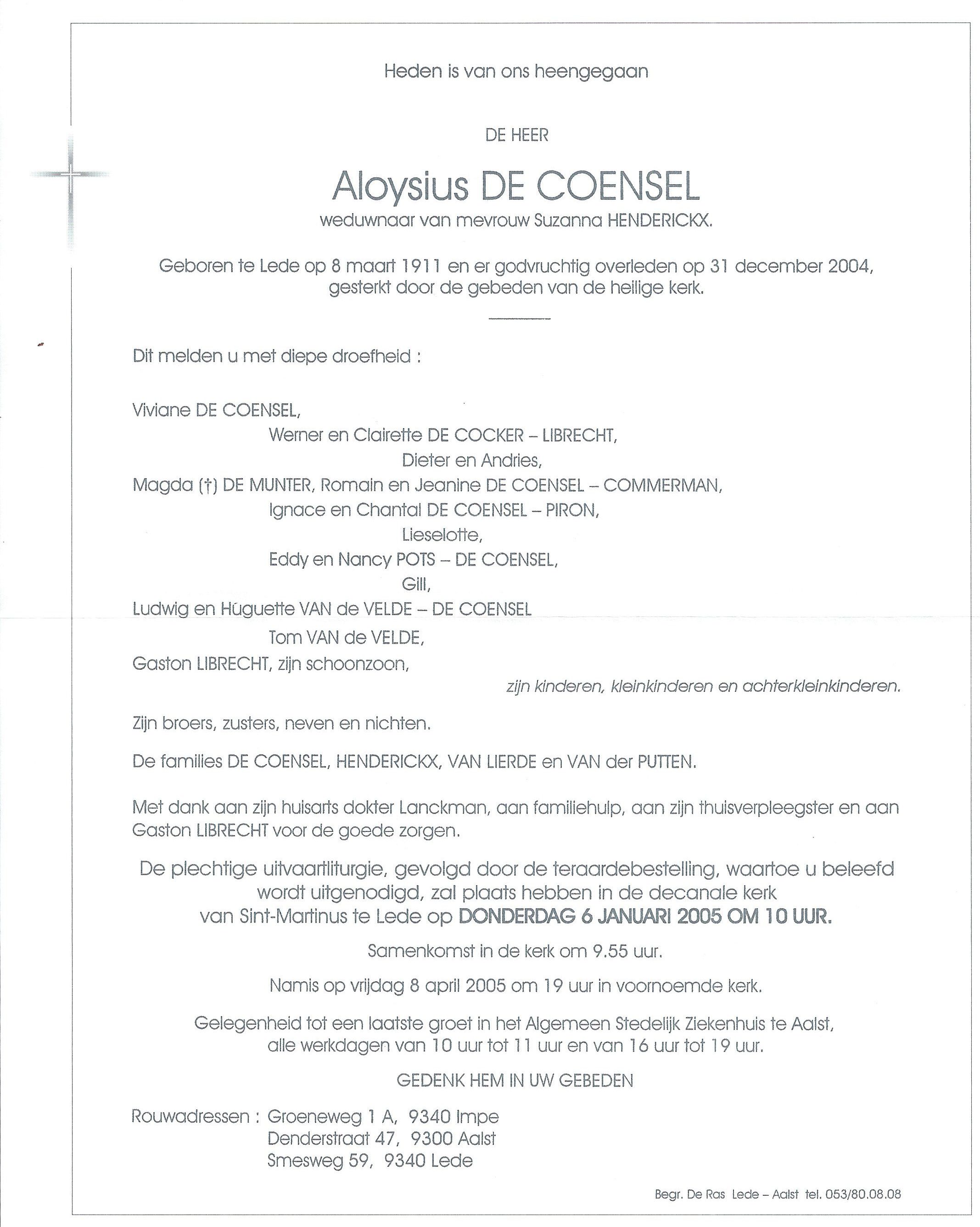Alois De CoenselLeeftijd: 93 jaar1911–2004