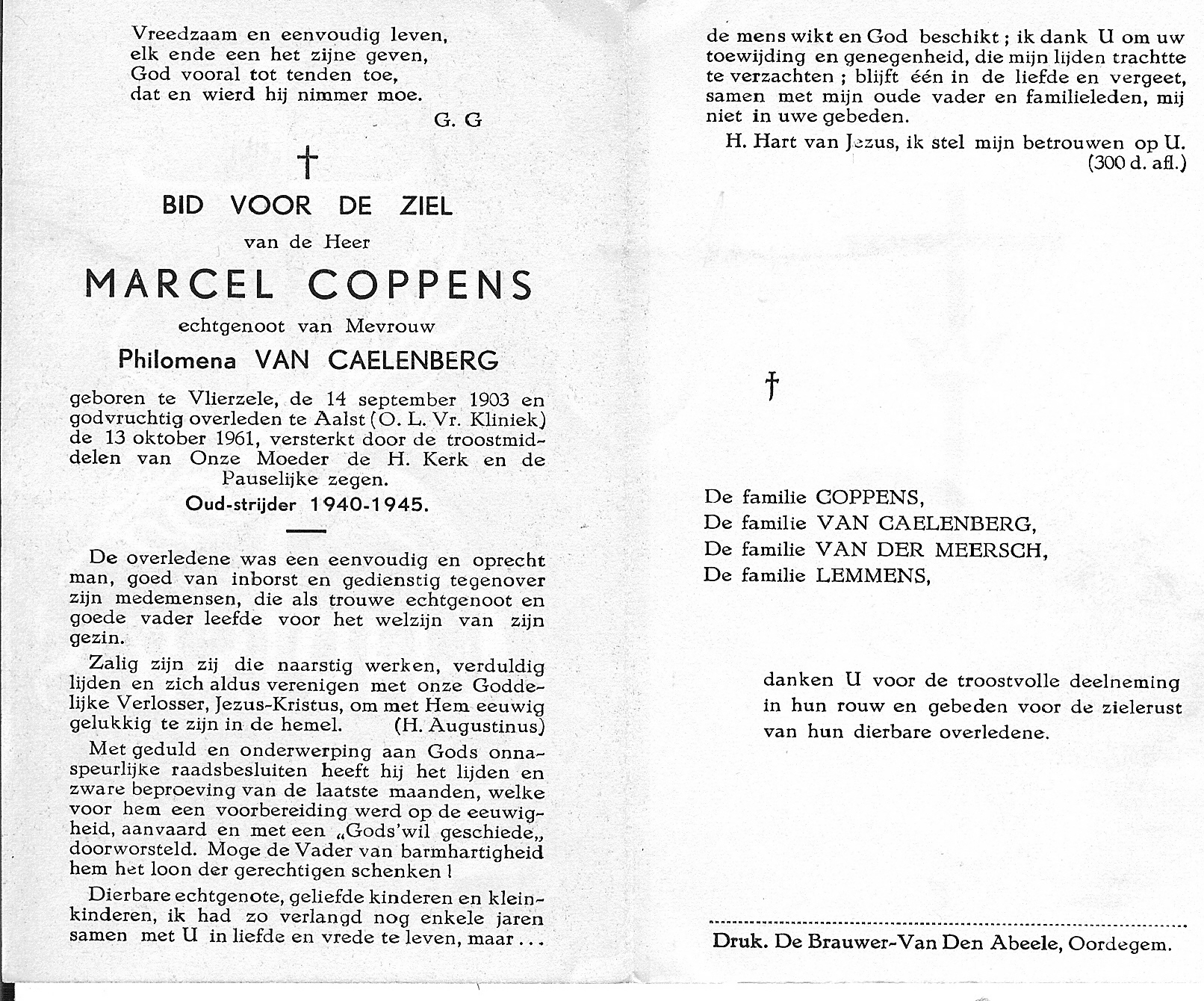 Marcel Coppens Geboren: 14 september 1903 27 18 — Vlierzele Overleden: 13 oktober 1961 — Aalst |