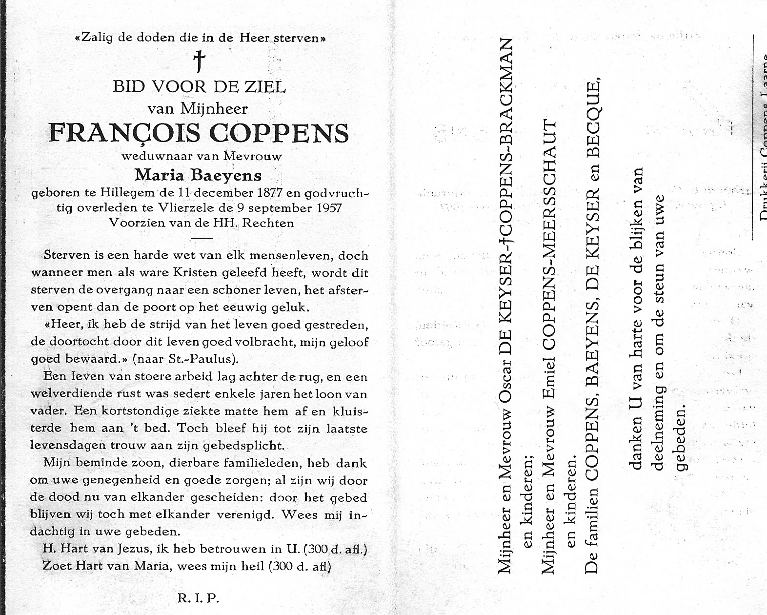 Franciscus Coppens Geboren: 18 januari 1837 — Vlierzele Overleden: |