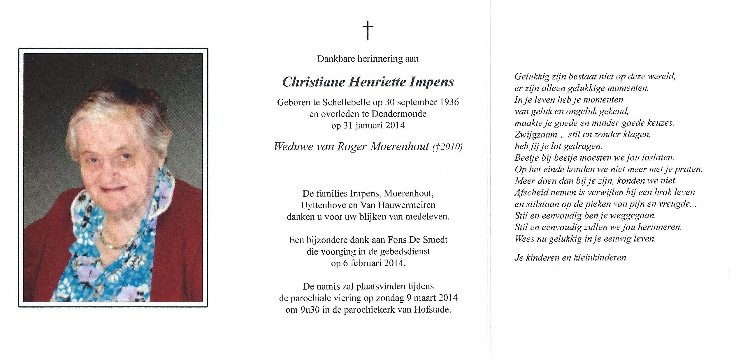 Birth: September 30, 1936 — Schellebelle Death: January 31, 2014 — Dendermonde |