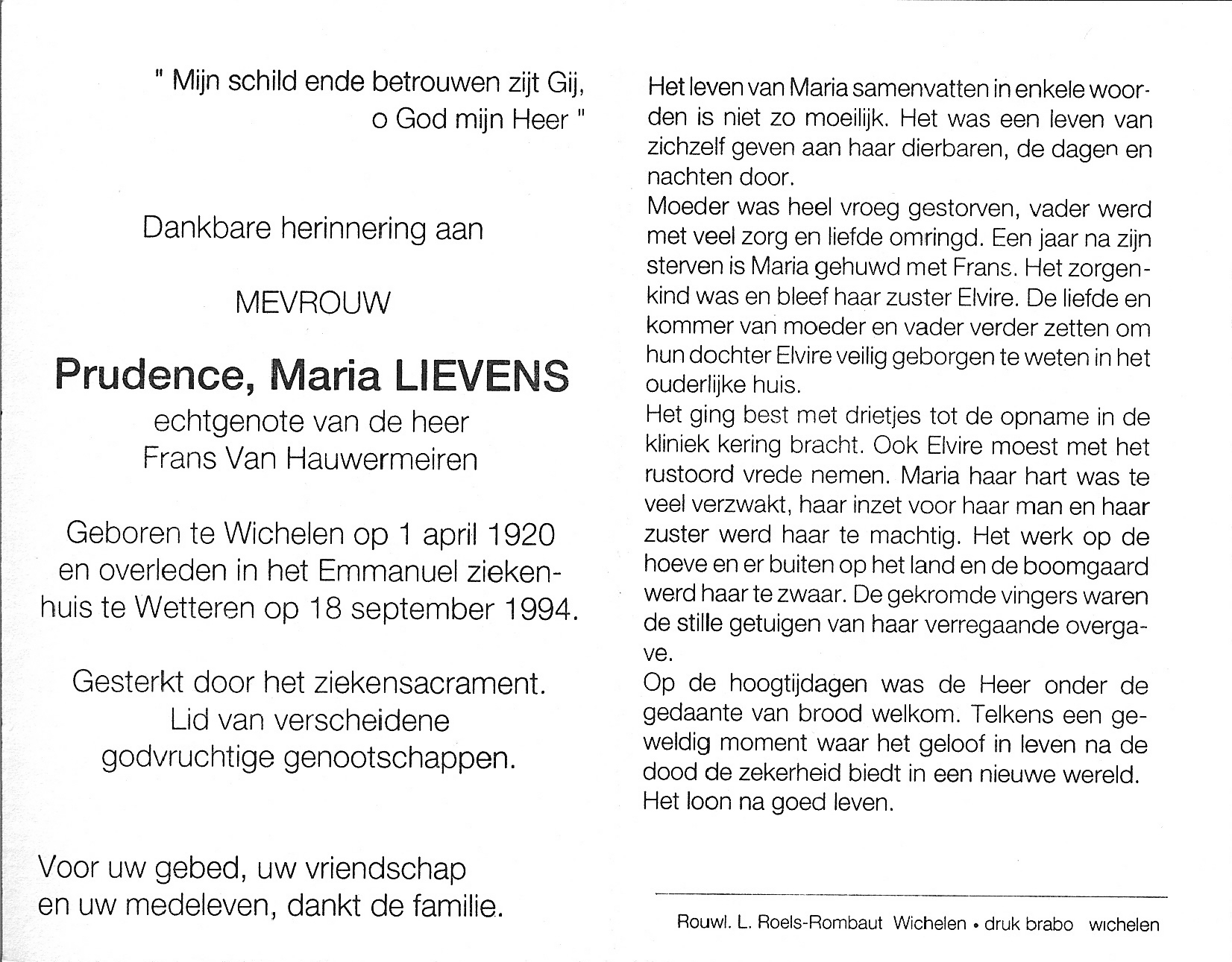 | Prudence Maria Lievens | 1 april 1920 | 106 | Wichelen | 0 | 18 september 1994 | 31 | 74 | Wetteren | 16 november 2011 - 19:10:00 | F | YES | Y100 | R | |||