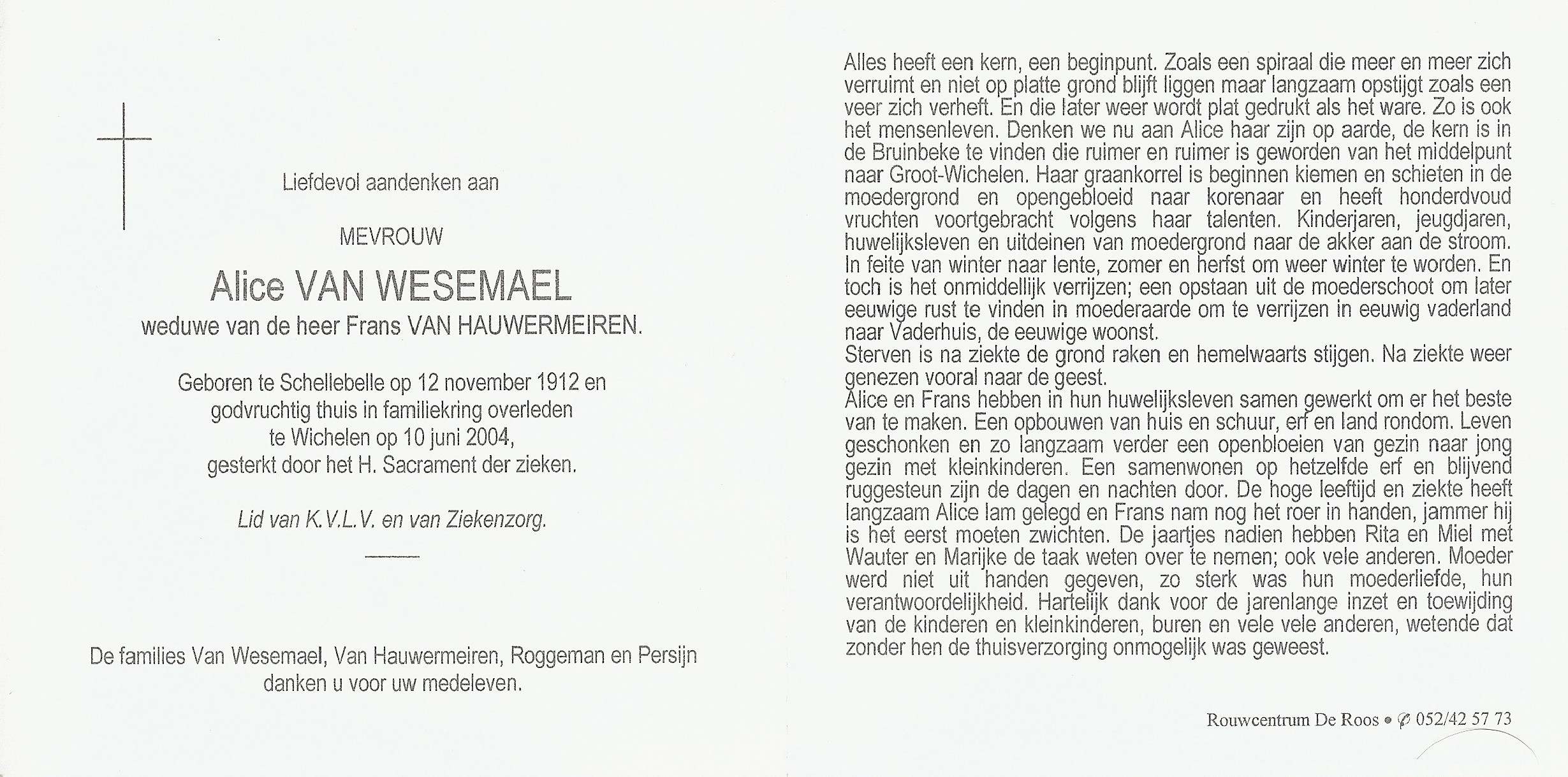 | Alice Palmyre Van Wesemael | 12 november 1912 | 113 | Schellebelle | 1 | 10 juni 2004 | 21 | 91 | Wichelen | 13 mei 2010 - 09:30:00 | F | YES | Y100 | ||||