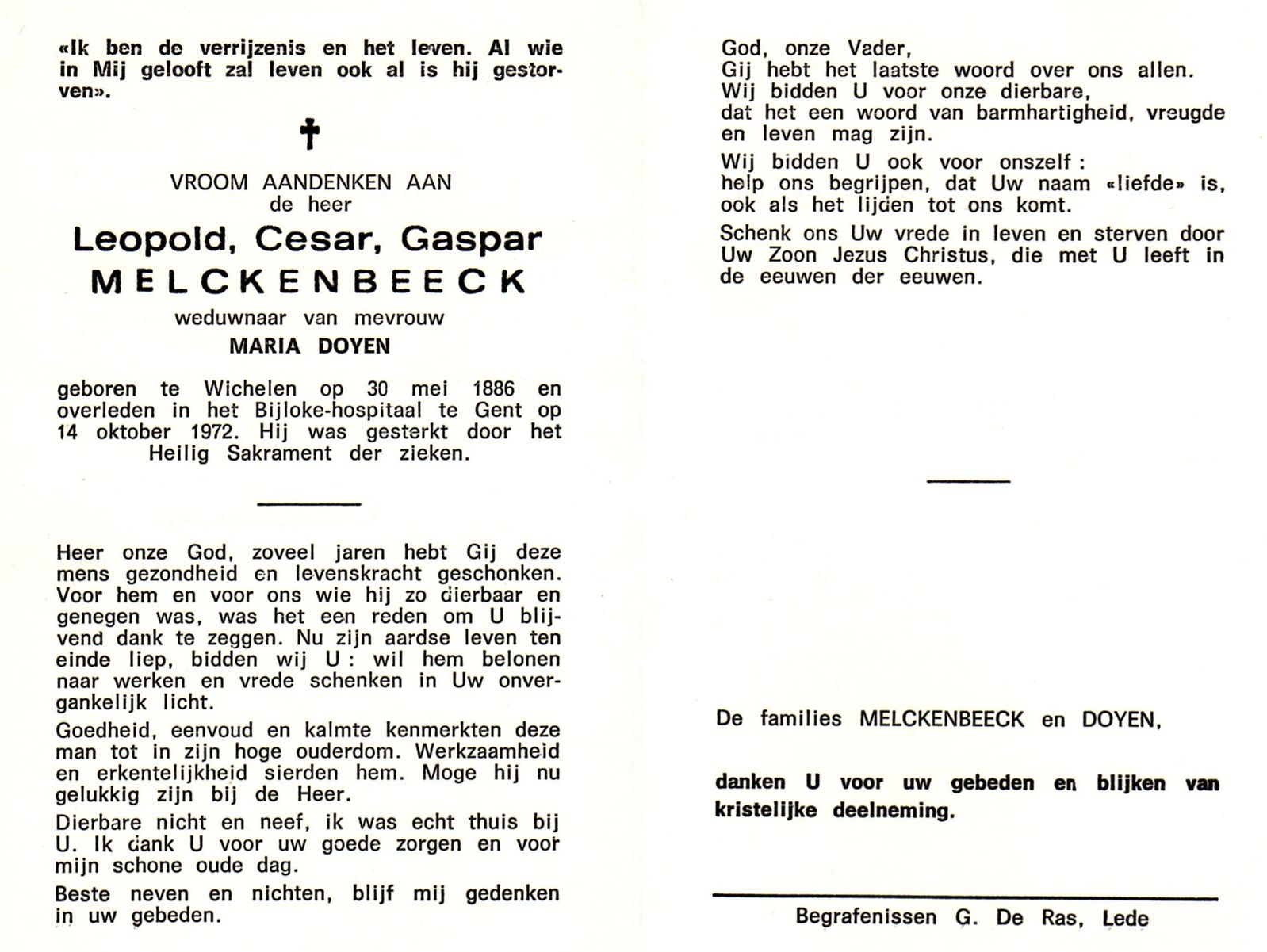 | Leopold Cesar Gaspard Melckenbeeck | 30 mei 1886 | 139 | Wichelen | 0 | 14 oktober 1972 | 53 | 86 | Gent | 20 augustus 2014 - 22:46:00 | M | YES | Y100 | R | |||
