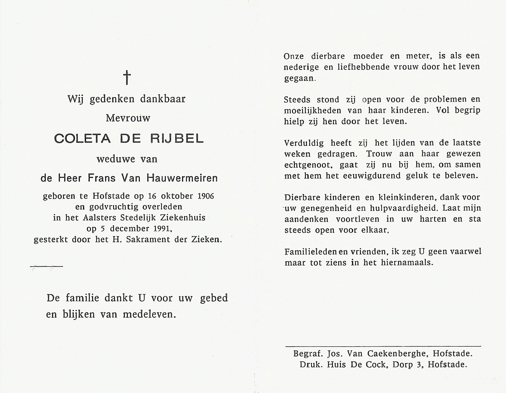 | Coleta De Rijbel | 16 oktober 1906 | 119 | Hofstade | 0 | 5 december 1991 | 34 | 85 | Aalst | 16 november 2011 - 19:58:00 | F | YES | Y100 | R | |||
